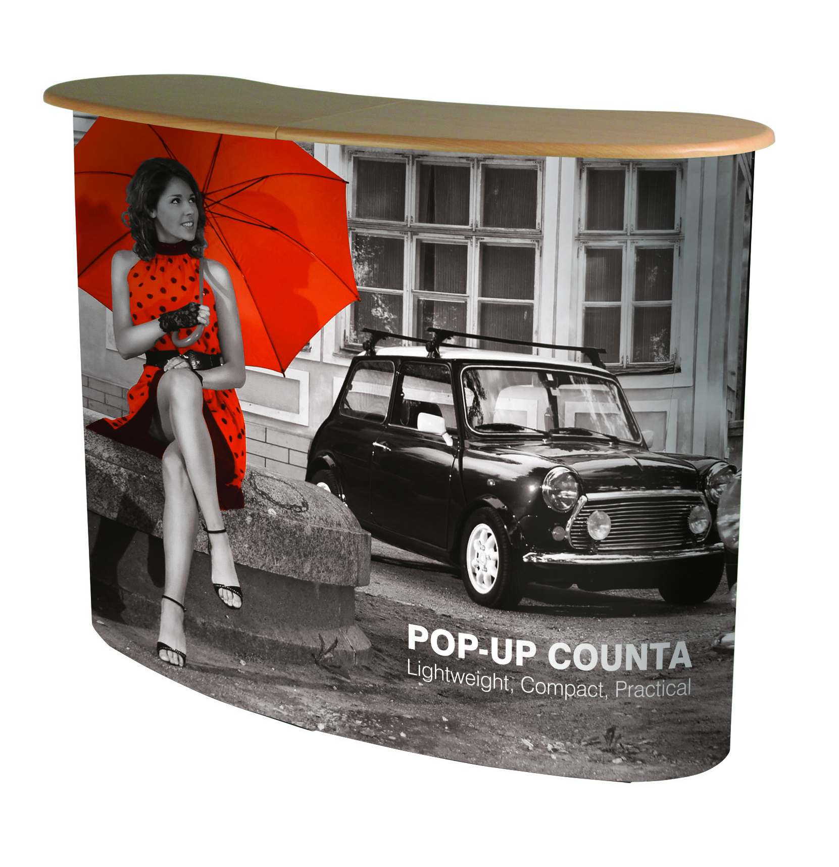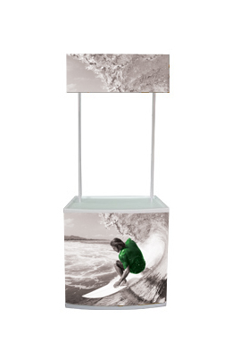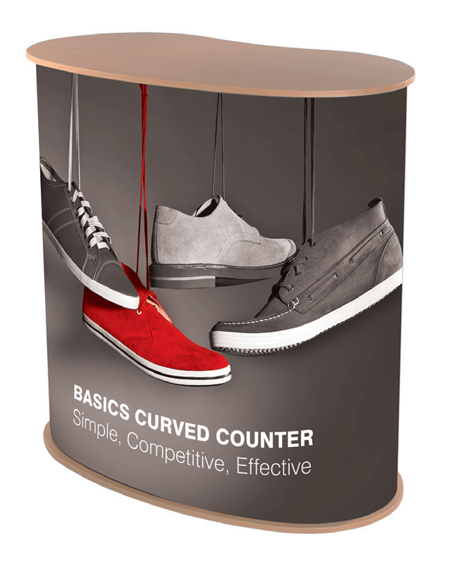 - Lekka, plastikowa, płasko pakowana lada promocyjna.