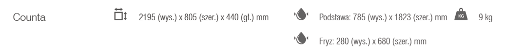 - W zestawie sztywny fryz, półka i podwójne słupy podpierające.